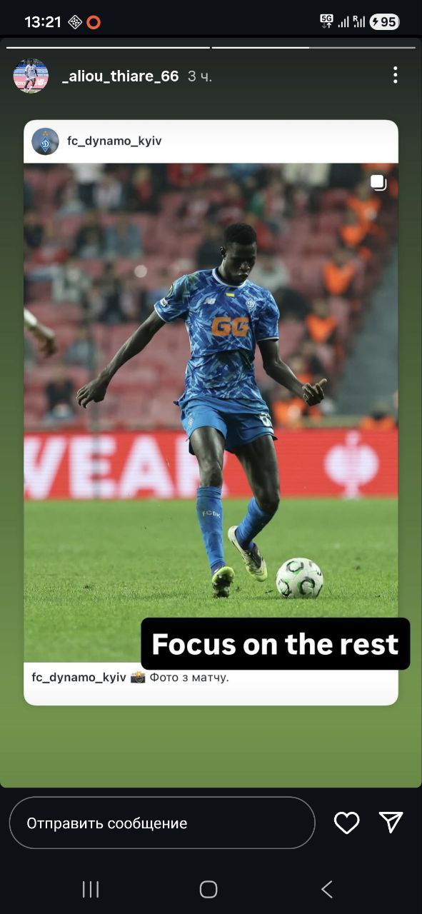 Захисник "Динамо" Аліу Тіаре у своєму Instagram висловився про поразку від "Самсунспора".
