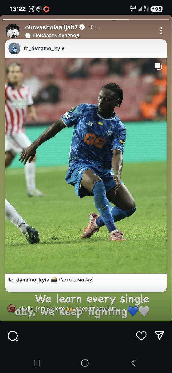 Вінгер "Динамо" Шола Огундана у своєму Instsgram прокоментував поразку киян у матчі проти "Самсунспору".