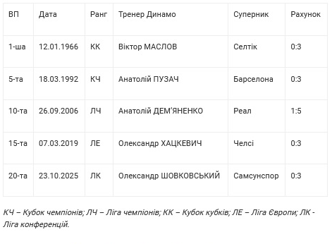 «Ювілейні» великі гостьові поразки Динамо в єврокубках