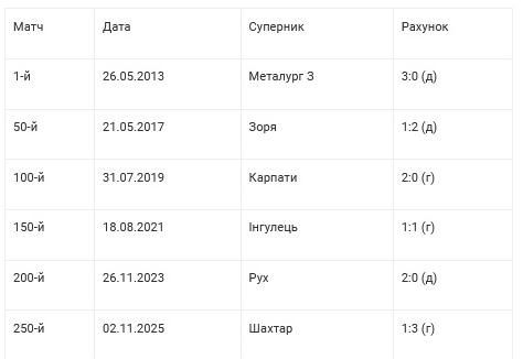 Ювілейні матчі Віталія Буяльського за Динамо в УПЛ