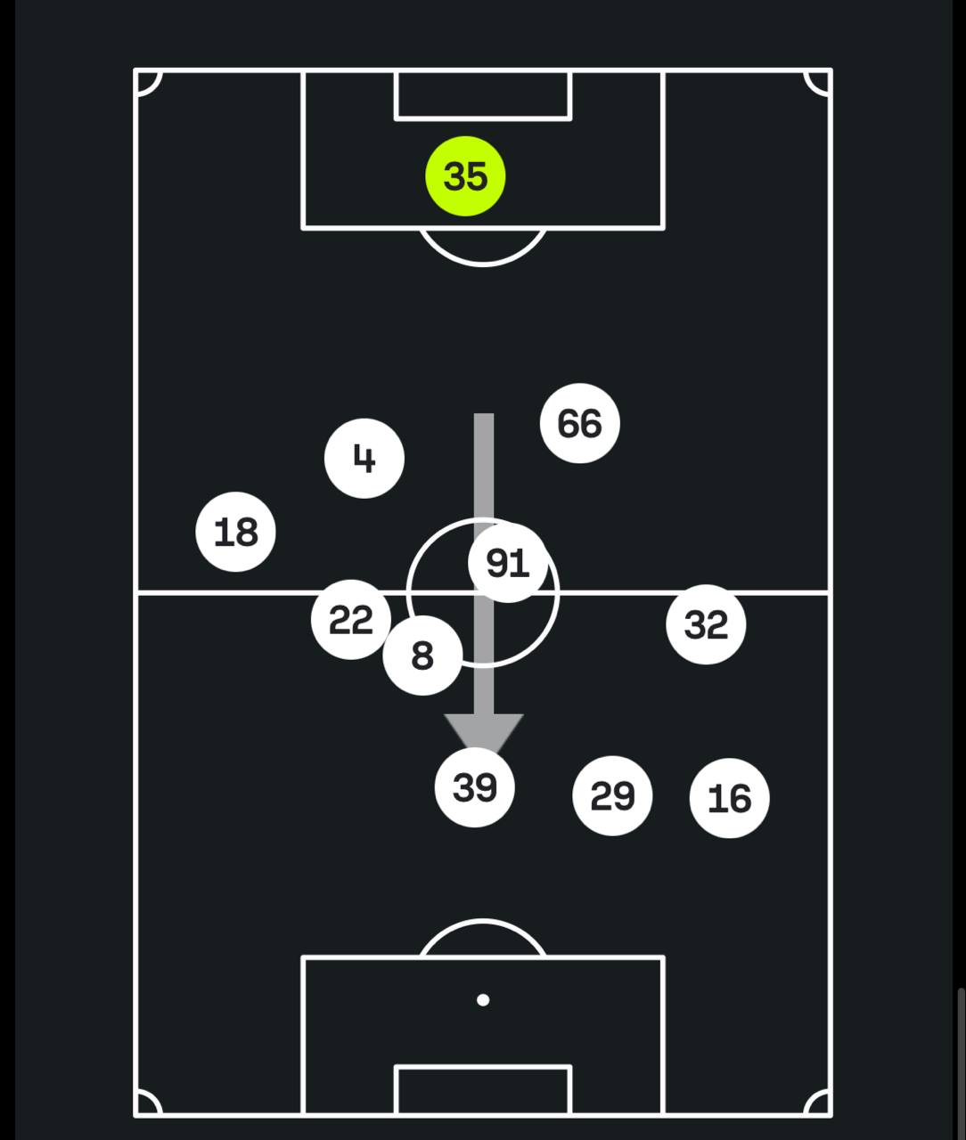 Вашій увазі мапа середніх позицій гравців Динамо у вчорашньому матчі.