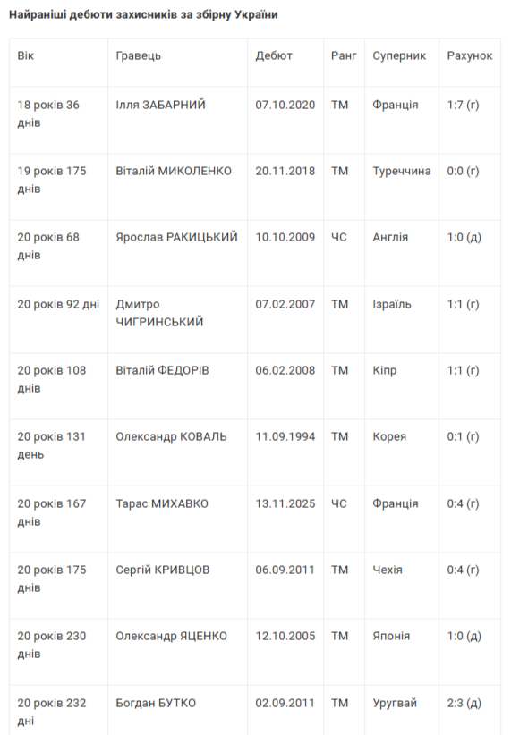 Михавко увійшов до десятки наймолодших захисників в історії збірної України