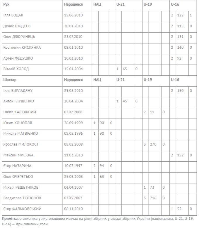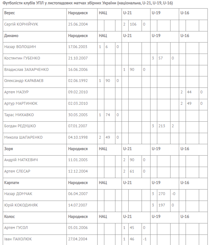 Футболісти 14-ти клубів УПЛ у листопаді зіграли у складі збірних України різних категорій