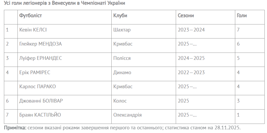 В УПЛ виступали вже 10 легіонерів з Венесуели, а голи забивали 7 гравців.