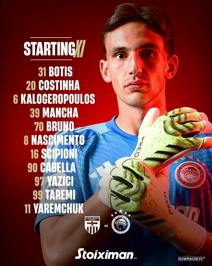 Український форвард "Олімпіакоса" Роман Яремчук грає у стартовому складі своєї команди в матчі Кубка Греції.