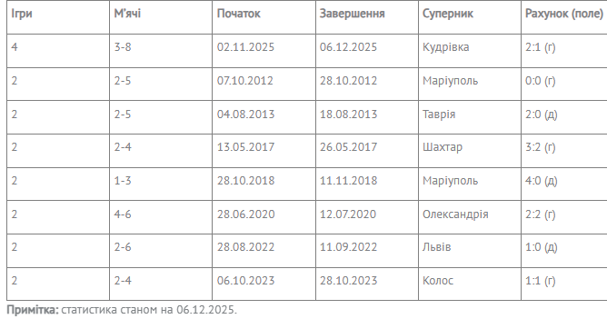 Найдовші програшні серії «Динамо» в Чемпіонаті України