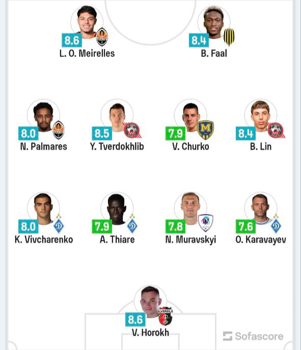 До неї увійшли динамівці Олександр Караваєв (оцінка - 7,6), Аліу Тіаре (7,9) та Костянтин Вівчаренко (8,0).