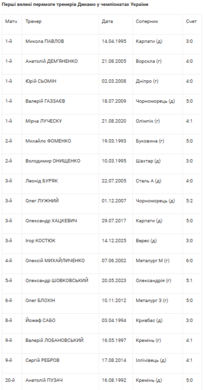 Прем'єрний розгром наставник "біло-синіх" відсвяткував у третьому матчі на чолі киян. Тим самим він, можна сказати, виконав клубний норматив. Адже 13-м тренерам динамівців із 18-ти на першу велику вікторію знадобилося не більше 5-ти ігор.