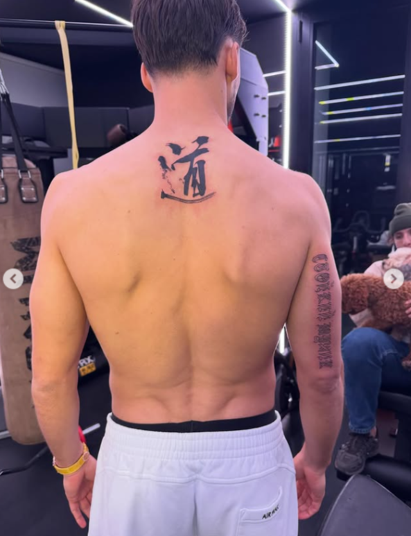 Він набив на правій руці тату, де написано "Стойкий мужик" російською мовою.