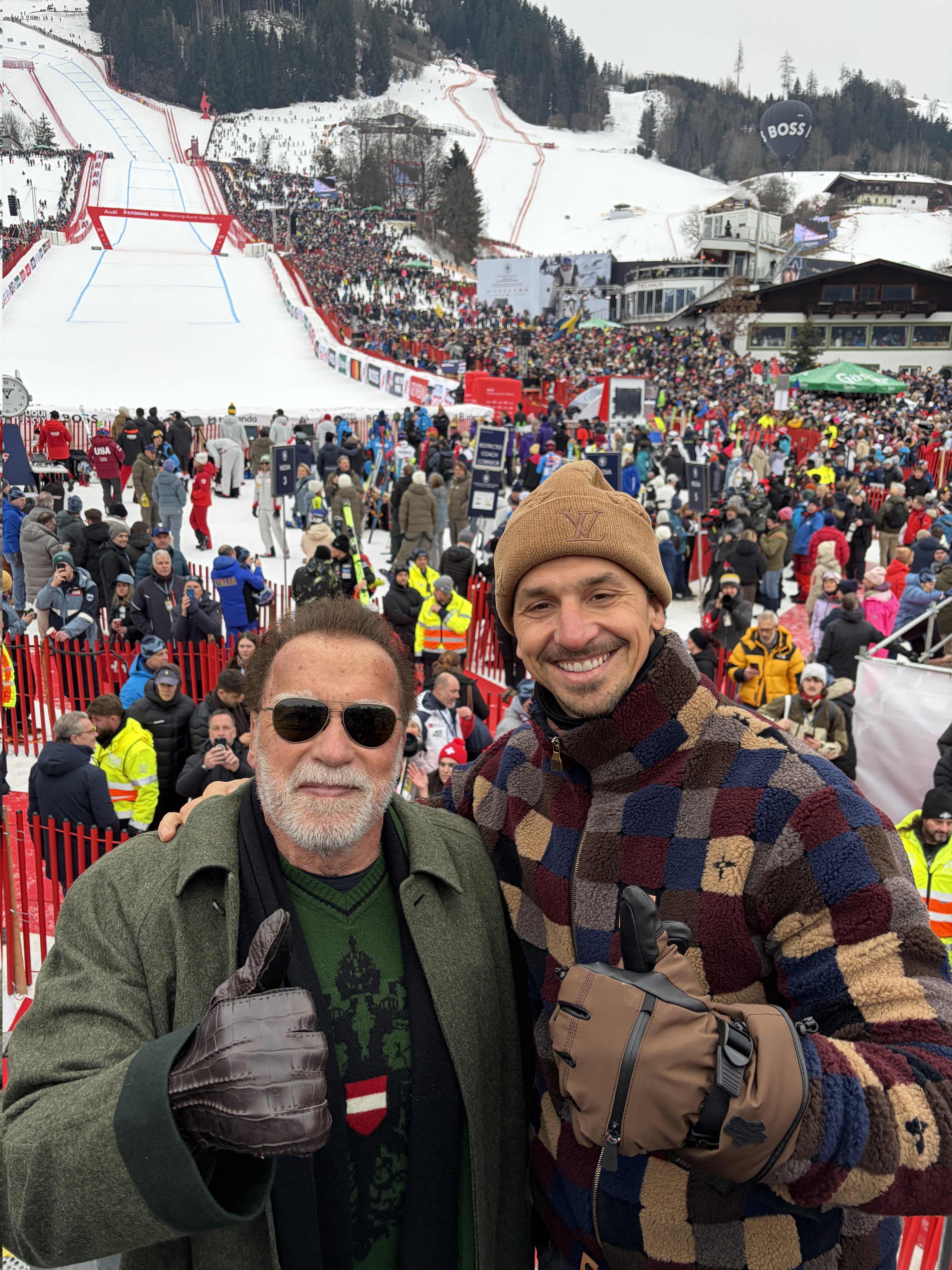 Златан Ібрагімович зробив фото з Арнольдом Шварценеггером на етапі Кубка світу з гірських лиж