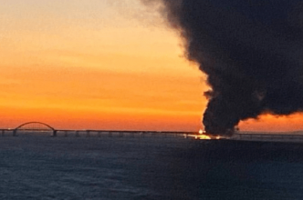 Hа залізничній гілці кримського мосту потужна пожежа.Джерело: джерела УП, російське пропагандистське видання "РИА Новости" з посиланням на "радника глави Криму"Деталі: Уточнюється, що на мосту сильна пожежа і на міст людей не пускають."РИА Новости" повідомили, що на мосту палає цистерна з паливом...