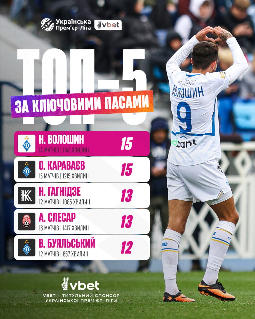 Обидва динамівці виконали по 15 таких передач, очолюючи відповідний рейтинг.