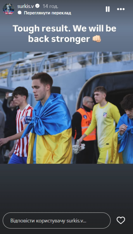 Голкіпер юнацької команди "Динамо" В'ячеслав Суркіс відреагував на поразку від "Атлетіко" з рахунком 2:6 у Юнацькій лізі УЄФА.