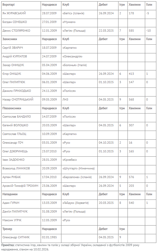 Склад збірної України U-17 на лютневі спаринги 2026 року
