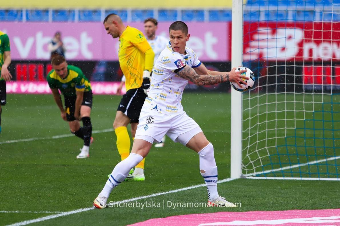 Журналіст Олександр Новак каже, що головний тренер "Динамо" Ігор Костюк просить Владислава Захарченка та Дениса Попова йти вперед, але вони цього не роблять.