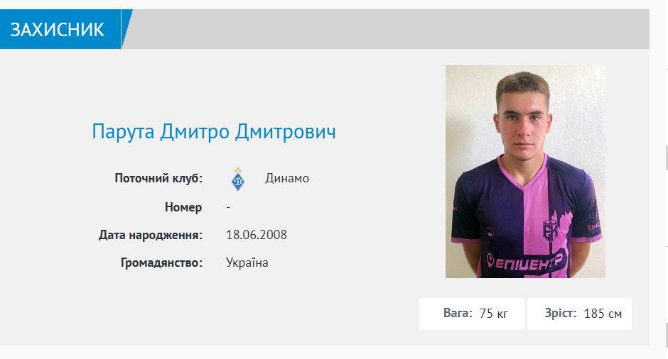 "Динамо" внесло в заявку на сезон Прем'єр-ліги захисник Дмитра Паруту 2008 року.