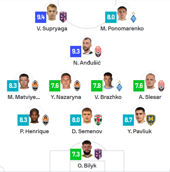 До неї увійшли півзахисник "Динамо" Володимир Бражко (оцінка - 7,8) та форвард киян Матвій Пономаренко (8,0).