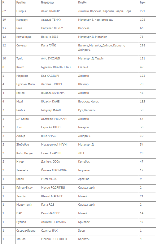 Він став легіонером вже 27-ї країни Африки, чиї представники виступали в УПЛ. Найбільше в історії українського Чемпіонату було задіяно гравців з Нігерії — 62 та Камеруну — 19.