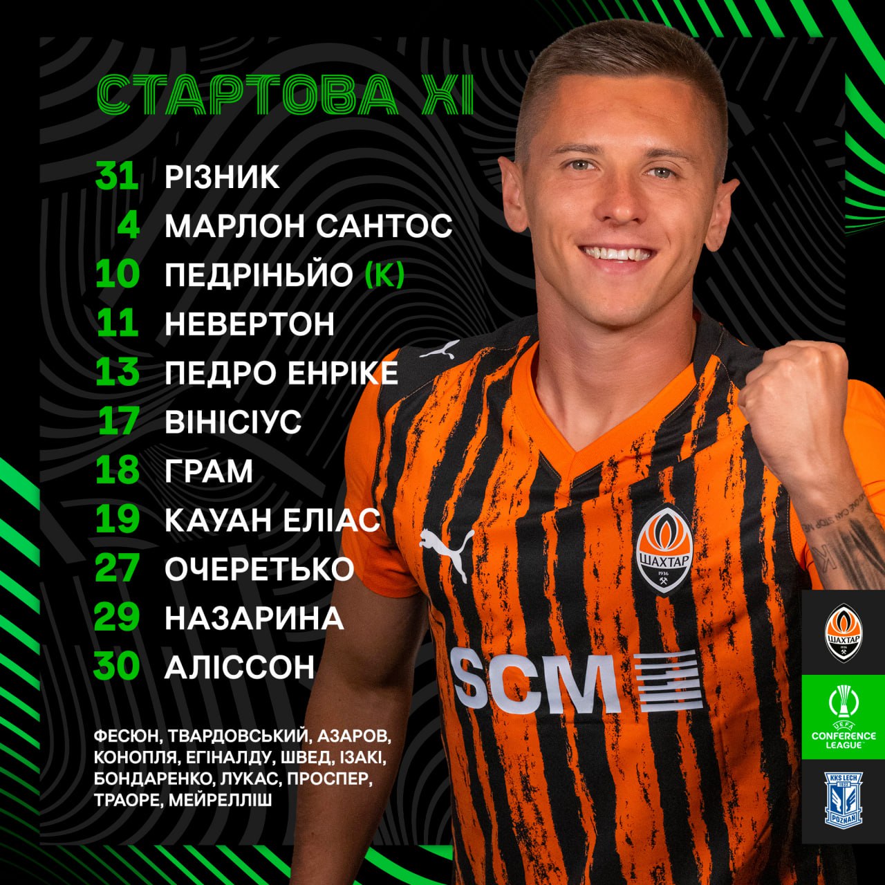 "Шахтар" назвав стартовий склад на матч проти "Леха" в Лізі конференцій