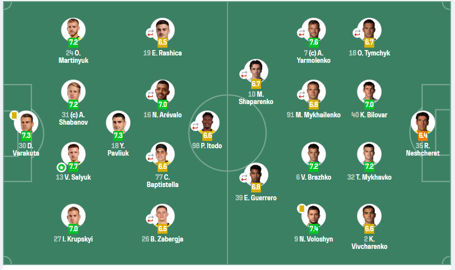 Кращим футболістом киян став Андрій Ярмоленко, який отримав 7,6 балів.