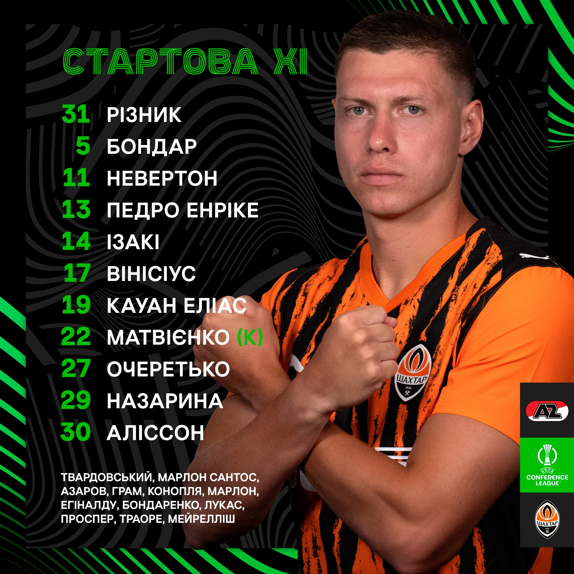 "Шахтар" визначився зі стартовим складом на матч проти АЗ Алкмар у Лізі конференцій