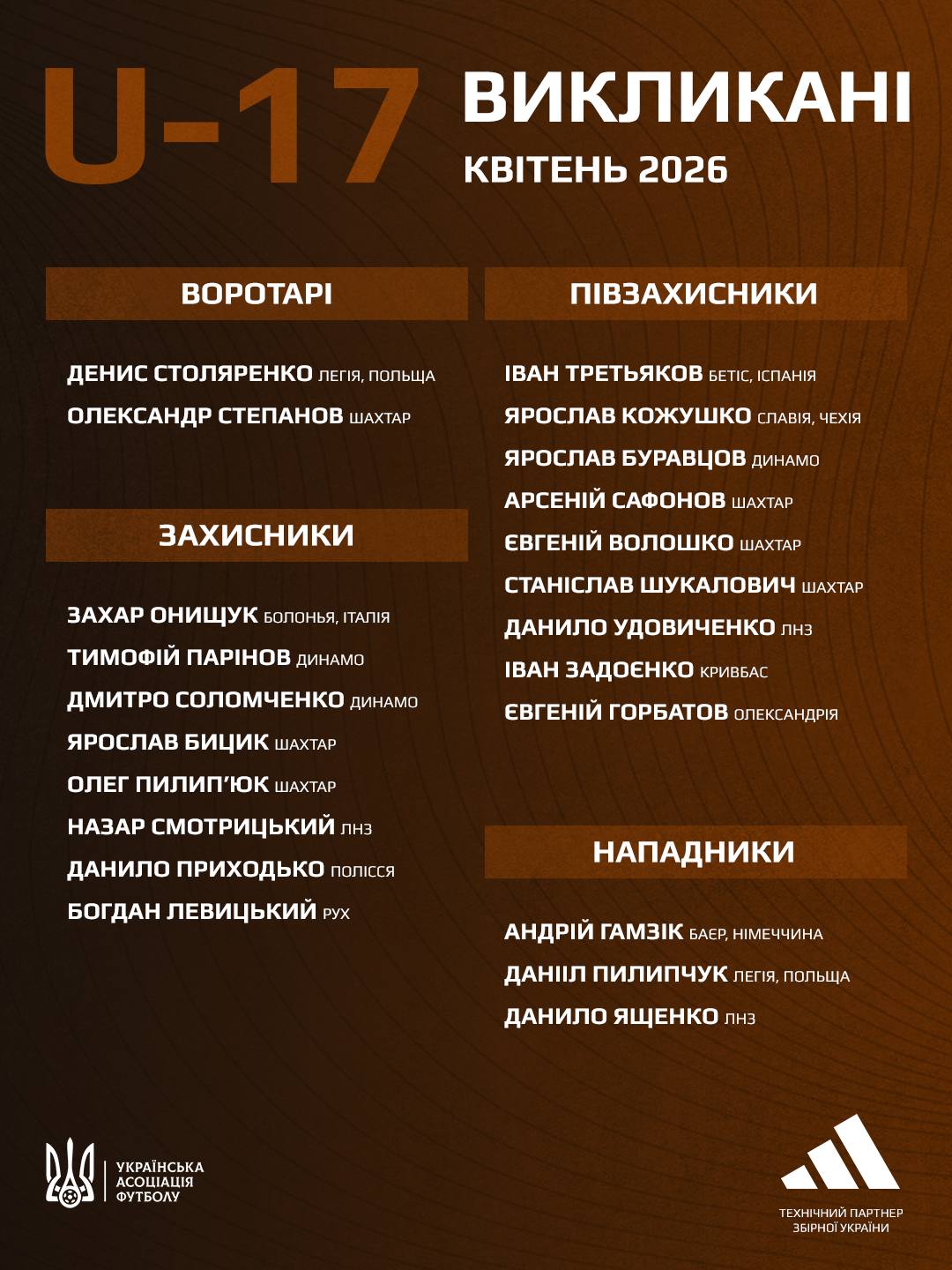 Три гравці "Динамо" отримали виклик до збірної України U-17