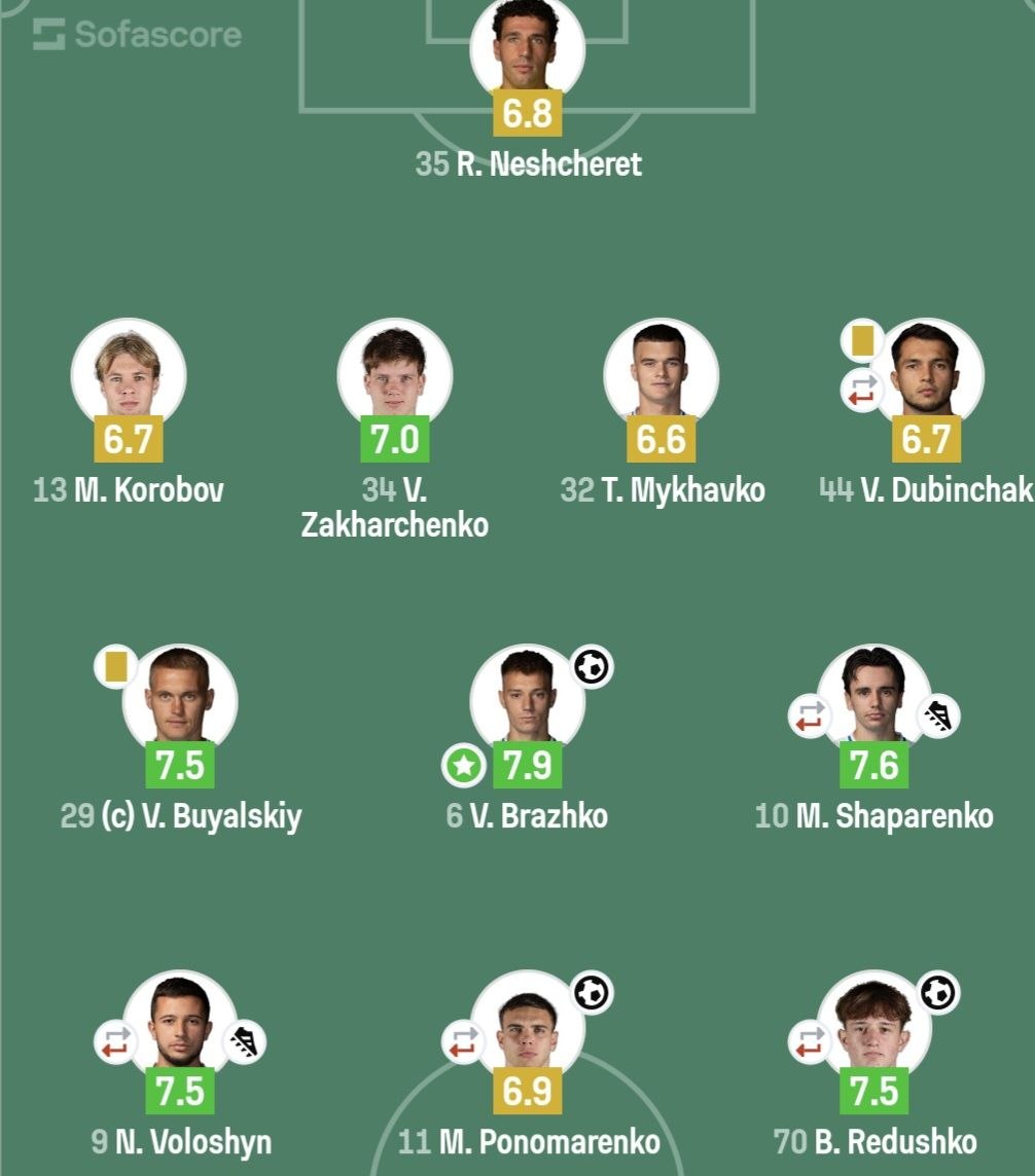 Найкращим у складі киян став Володимир Бражко з оцінкою 7,9. На другому місці Микола Шапаренко (7,6), а третє ділять між собою Віталій Буяльський (7,5), Назар Волошин (7,5) та Богдан Редушко (7,5).