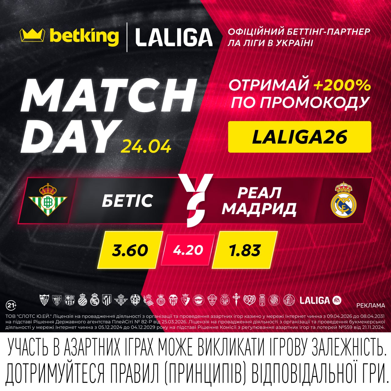 Ліцензований букмекер betking, що входить до складу King Group, є офіційним беттінг-партнером провідної футбольної ліги Іспанії — Ла Ліги в Україні.
