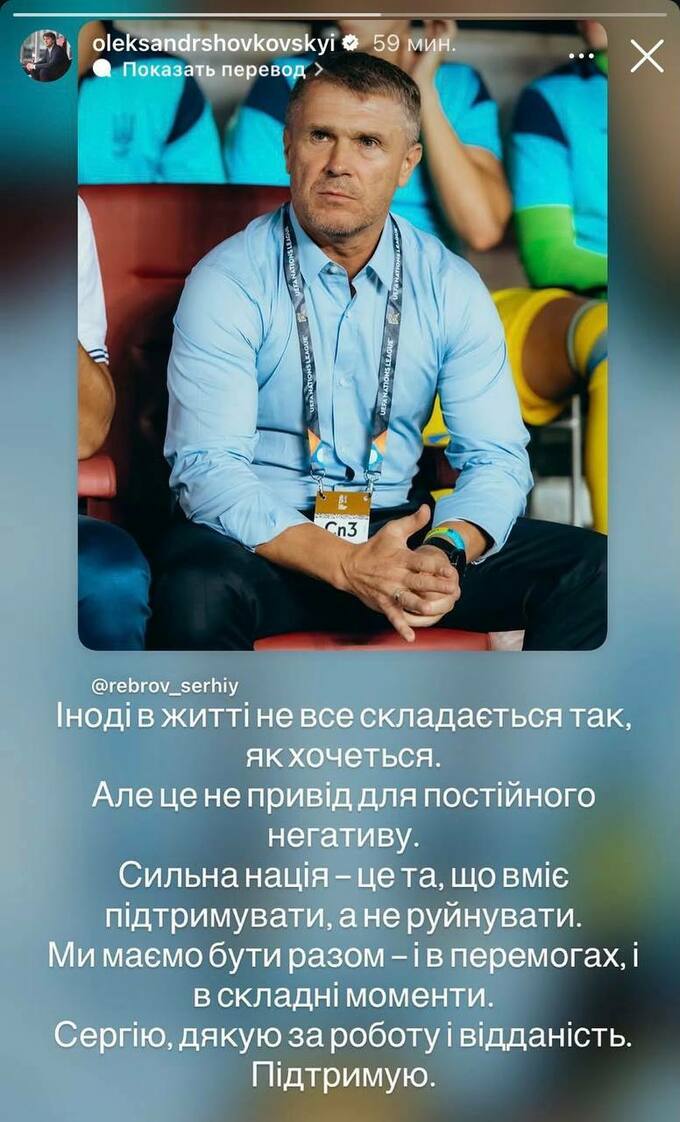 Колишній гравець і тренер "Динамо" Олександр Шовковський підтримав свого екс-одноклубника Сергія Реброва після відставки з посади наставника збірної України.