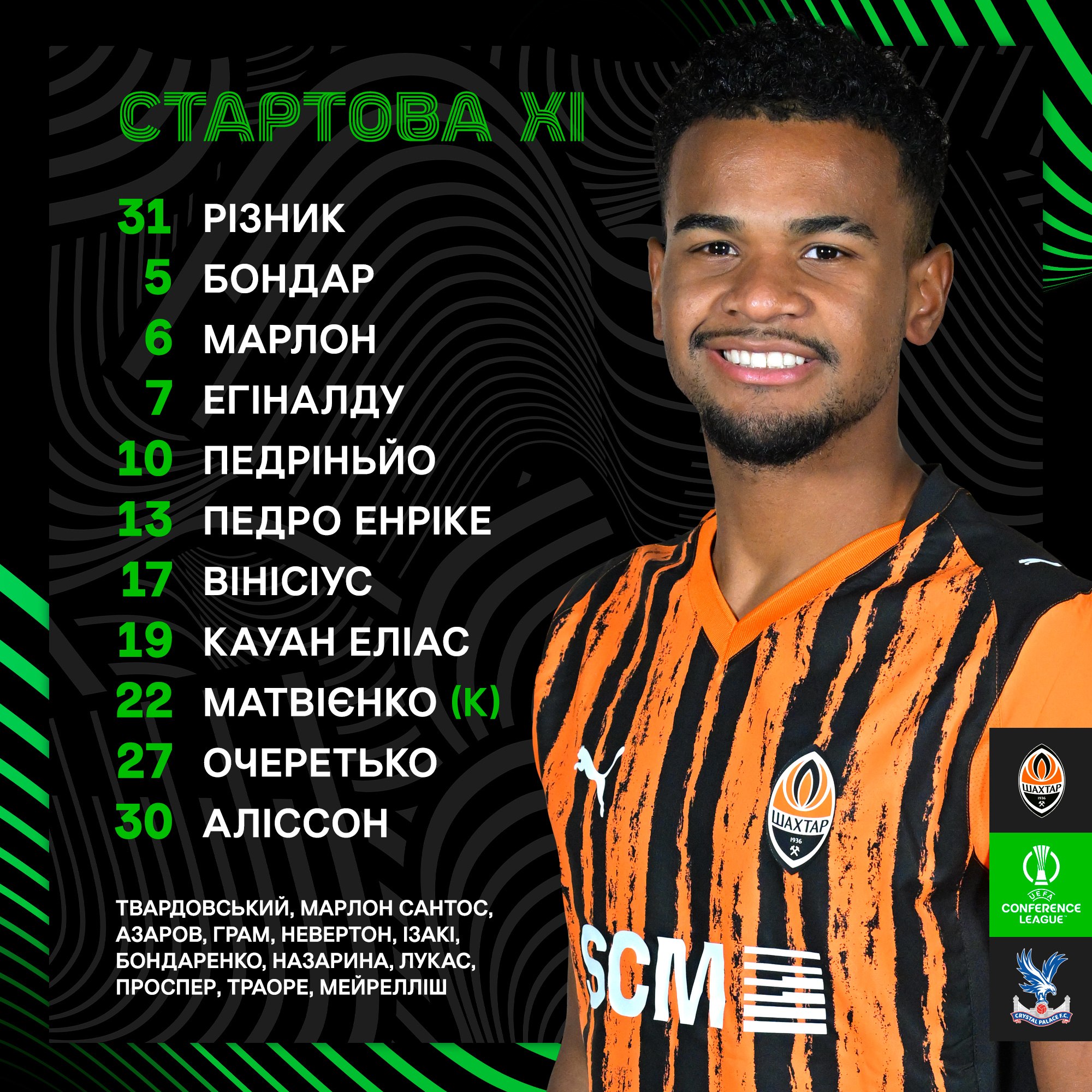 Донецький "Шахтар" оприлюднив свій стартовий склад на перший півфінальний матч Ліги конференцій проти "Крістал Пелас", те саме зробили англійці.