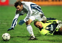 Если до перерыва хозяева с трудом организовывали наступление, то во втором тайме пара Шевченко–Ребров заработала «на полную». «Если честно, мы в первую очередь старались не дать сыграть «Реалу, – раскрывает карты Ребров. – Но когда из-за нашего прессинга гости начали уставать и ошибаться, путь к их воротам стал посвободней». На 62-й минуте Шевченко вышел один на один с Иллгнером, и вратарь только ценой фола остановил Андрея. Удар «Шевы» с пенальти немецкий голкипер отразил, сердце екнуло, но наш нападающий первым успел на добивание – 1:0.