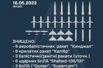 Російські загарбники вночі 16 травня атакували Україну 18 ракетами