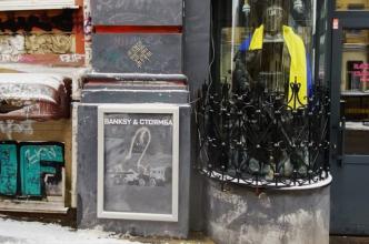 Одна з робіт британського анонімного стрітарт художника Бенксі продовжує свої мистецькі метаморфози.Графіті,