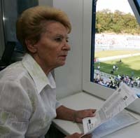 - Суть работы была той же, что и теперь. Поздороваться со зрителями, объявить составы команды, авторов голов, проведенные замены… Только тогда мое рабочее место находилось на беговой дорожке, на краю тренерской скамьи, которая тогда не имела без навеса. Можно сказать, место диктора было в самом центре событий. Я слышала все реплики тренеров, видела радость одних и огорчение других. За почти пятьдесят лет в «Динамо» сменилось более десяти тренеров, и все они отличались интеллигентностью и сдержанностью. Воплощением образа тренера служил Лобановский, все эмоции сдерживавший в себе. Возможно, для здоровья лучше встать и покричать на игроков, но он этого позволить себе не мог. То же самое могу сказать о Соловьеве, Севидове, Маслове, Терентьеве, Демьяненко. Пожалуй, самыми эмоциональными в силу характера были закарпатцы Коман и Сабо. Сама я тоже переживала очень сильно, но молча, сердцем.