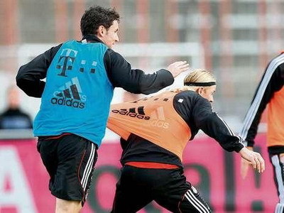 Приступивший сегодня после травмы к тренировкам в составе "Баварии" капитан команды Марк ван Боммель чуть не повздорил со своим конкурентом за место в составе украинцем Анатолием Тимощуком.
