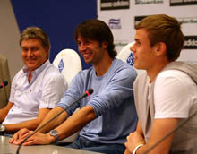 Александр Шовковский: – Все замечательно, все хорошо. Сегодня команда собралась, ребята работали по разным графикам. Одни восстанавливались после вчерашних игр за сборные, другие тренировались. Вот, я после тренировки еле успел к вам добраться, сейчас на Столичном шоссе жуткая «пробка». Благо, как коренной киевлянин знаю потайные улочки. Быстро доехал(смех в зале).
