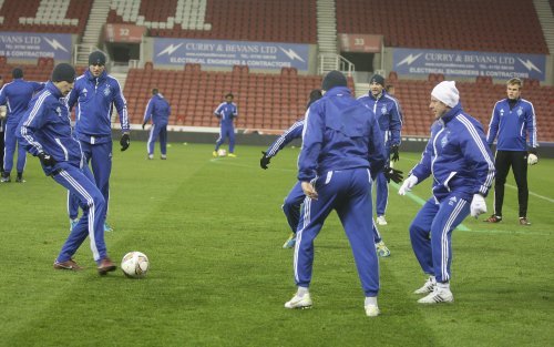 …Арена в Трентхэме официально числится самой холодной в эту пору года в английской премьер-лиге - газон и трибуны открыты всем ветрам. Динамовцы получили возможность почувствовать это с первых минут вчерашней вечерней тренировки: особенно забавлял их тот факт, что сквозняк, прорывавшийся сквозь зазоры между трибунами, то и дело сносил мяч в «квадрате». Позабавило футболистов и наличие на газоне… альтернативной зеленой разметки: как оказалось, она актуальна для матчей внутренних турниров, где регламент не задает столь жестких требований к ширине поля.