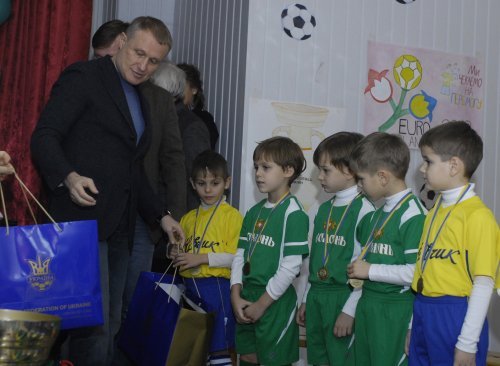 «А Шева будет?» - школа, в которой вчерашним вечером плотность футбольных звезд на квадратный метр актового зала превышала все мыслимые пределы, бурлила и шумела, а в створе приотворенной двери вихрастые головы учеников сменялись коротко стрижеными. Для школы, при которой давно существует спортивный спецкласс, предстоявшее в четыре часа пополудни мероприятие могло бы стать будничным и привычным, если бы не визит гостей во главе с президентом ФФУ Григорием Суркисом.