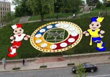 На создание клумбы пойдет около 50 тысяч цветочных растений. Ее выполнят в национальных цветах Украины и Польши - голубом, желтом, белом и красном. Посредине циферблата высадят небольшое футбольное поле, а по бокам изобразят в динамике Славека и Славка.