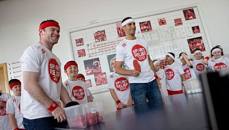 Игроки «Манчестер Юнайтед» Рио Фердинанд и Уэйн Руни на некоторое время отложили футбольный мяч в сторону, чтобы надеть головные повязки и взять в руки маленькие ракетки, незаменимый атрибут спортсменов, играющих в пинг-понг. Вместе с ними в эту игру сыграли ученики детской школы в Престоне, которые, кстати, готовятся к участию в нелегком забеге на 500 миль вокруг школы. Таким образом футболисты выступили в поддержку благотворительной кампании Sport Relief в Великобритании.