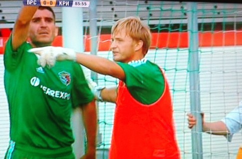 На 84-й минуте матча между «Ворсклой» и «Кривбассом» произошёл неординарный случай в истории нашего футбола. «Кривбассовец» Иржи Еслинек вышел один на один с голкипером полтавчан Сергеем Долганским, прокинул мяч мимо него и был сбит последним в метре от линии штрафной. Арбитр Сергей Даньковский тут же удалил вратаря хозяев. На тот момент (шла 84-я минута) все три замены полтавчане использовали, так что пришлось им определять в рамку «полевого» игрока (вообще, я не люблю это выражение, поскольку тогда получается, будто вратарь не в поле играет, а за ним где-то). Вратарские перчатки одел полузащитник молодежной сборной Украины Роман Безус, которому тут же и забили гол прямо с этого штрафного – Алексей Антонов отличился...