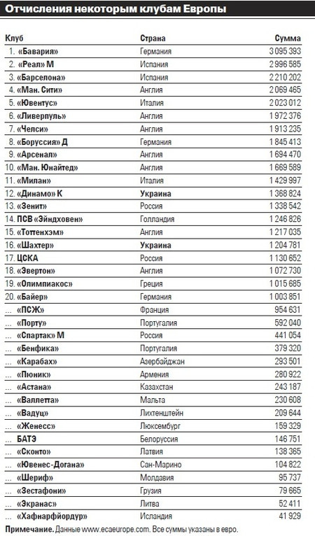 Сегодняшний денежный дождь стал возможен благодаря решению зарезервировать 40 миллионов евро для тех клубов, чьи футболисты участвовали в отборочных матчах Евро-2012. Эти клубы получат финансовые средства в равной доле за каждого футболиста, игравшего в каждом конкретном поединке квалификационного турнира. Остальные почти 60 миллионов евро будут направлены клубам, которые делегировали игроков непосредственно на время проведения финального турнира. Сумма рассчитывалась довольно просто, исходя из того, сколько дней каждый футболист пробыл на чемпионате и какую позицию занимает клуб в мировой футбольной иерархии.
