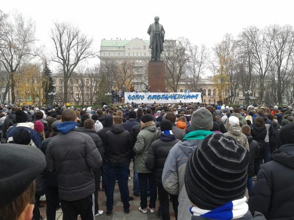 В воскресенье, 25 ноября, более трех тысяч человек, в основном футбольных болельщиков клуба Динамо, провели митинг в поддержку Дмитрия и Сергея Павличенко, обвиняемых в убийстве судьи Зубкова, сообщает Корреспондент.net со ссылкой на Українські новини.