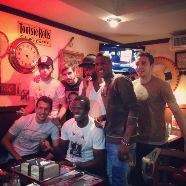 Полузащитник "Динамо" Мигел Велозу разместил в Фейсбуке фото с подписать "С днем рождения, Тайво". На нем сам Велозу, Адмир Мехмеди, Аруна, Браун Идейе, Марко Рубен, Данило Силва и Тайе Тайво весело отмечают день рождения последнего в одном из киевских заведений. Украинских игроков "Динамо" на фото замечено не было.