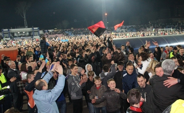 Черкасские болельщики отпраздновали выход "Славутича" в полуфинал Кубка Украины с командой на поле (+ФОТО)
