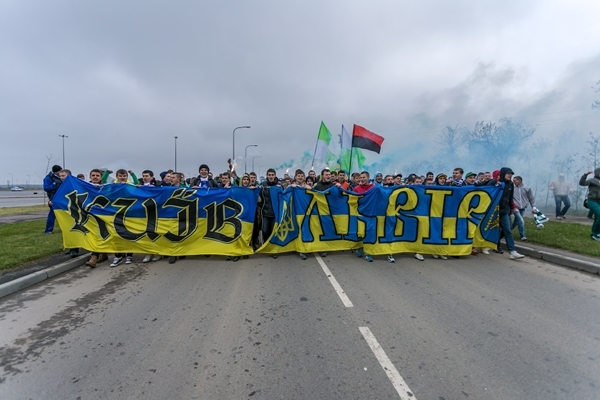 По завершению матча единства между ультрас ФК «Карпаты» и ФК «Динамо», болельщики футбольных клубов перед очередным матчем Премьер-лиги в Львове провели общую шествие в поддержку территориальной целостности и суверенитета Украины. Фанаты прошли от главной спортивной арены Галичины - «Арены Львов» до стадиона «Украина», где позже состоялся матч.