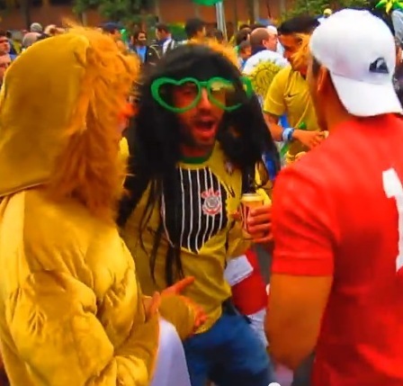 Колоритные британские, уругвайские и бразильские фаны, сначала веселящиеся и поющие песни перед игрой Уругвай - Англия, а потом и поддерживающие команды с трибун во время матча.