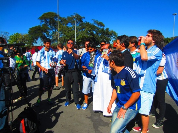 Колоритные аргентинские фанаты перед матчем 1/8 финала чемпионата мира-2014 против Швейцарии.