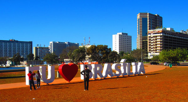и гигантские буквы, складывающиеся в текст "Я люблю Бразилиа",