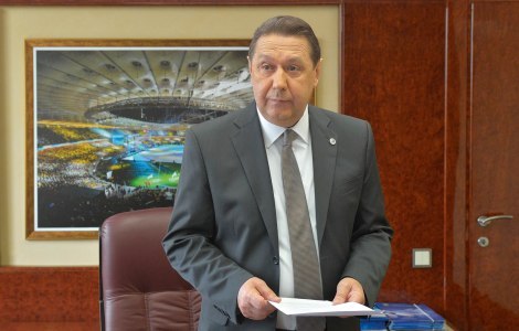 Президент Федерації футболу України Анатолій Коньков відвідає кваліфікаційний матч молодіжного чемпіонату Європи 2015 року між збірними України та Швейцарії.